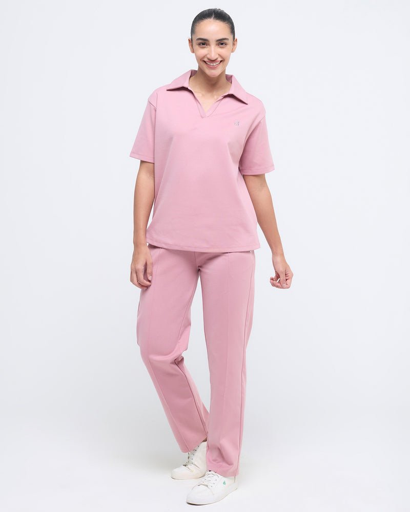 Essential Polo Neck Half Sleeve & Straight pants co-ord set