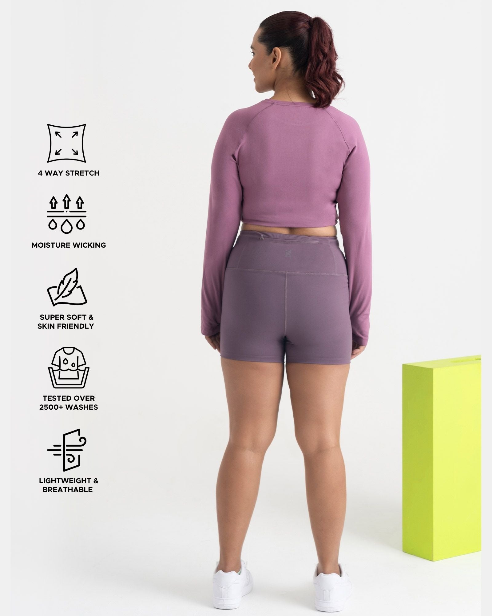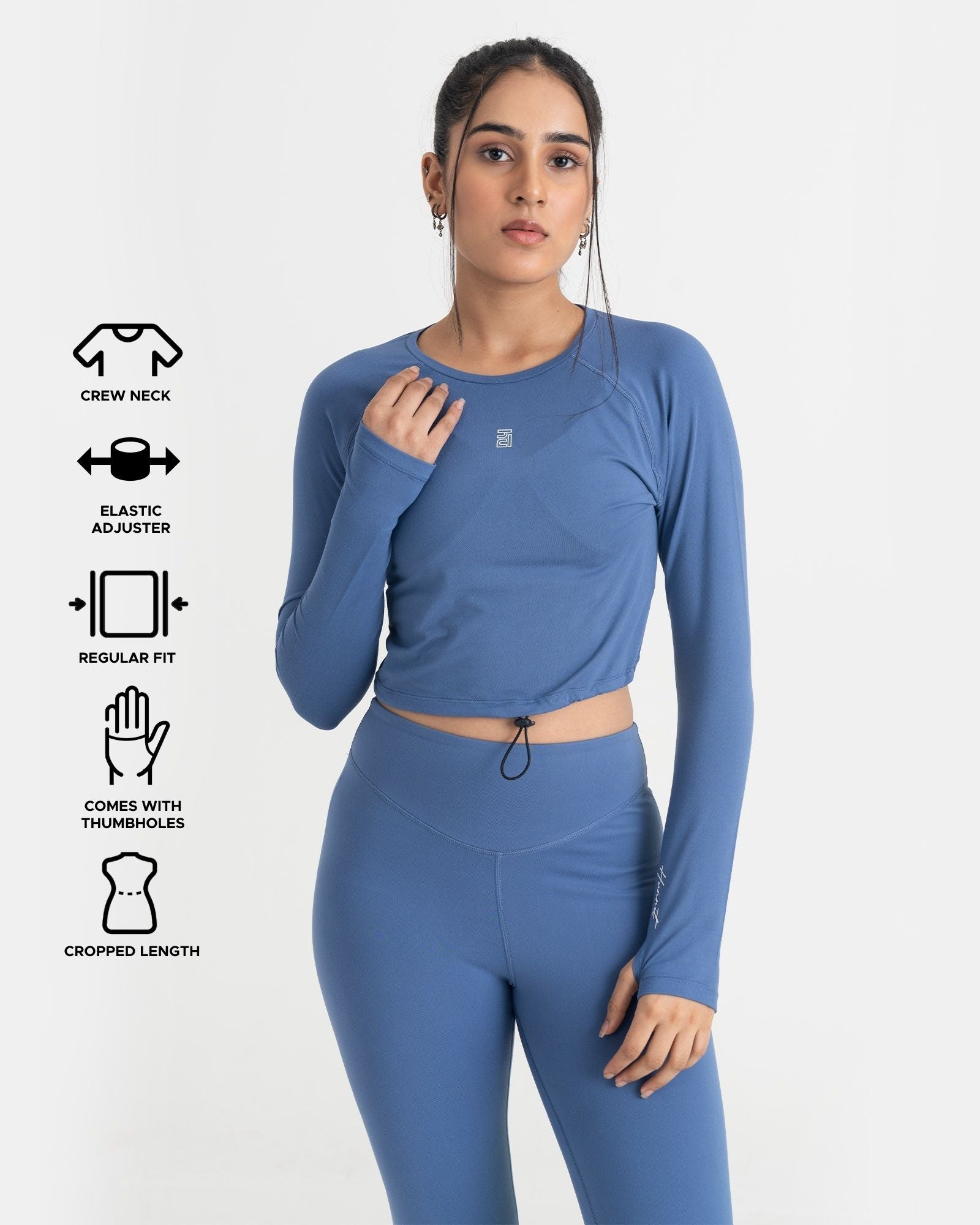 Sweat? What Sweat? Our Zen Full-Sleeve Crop Top will be your personal sweat manager – wicking away moisture and keeping you feeling fresh, even on the hottest days! Goodbye, awkward sweat patches!