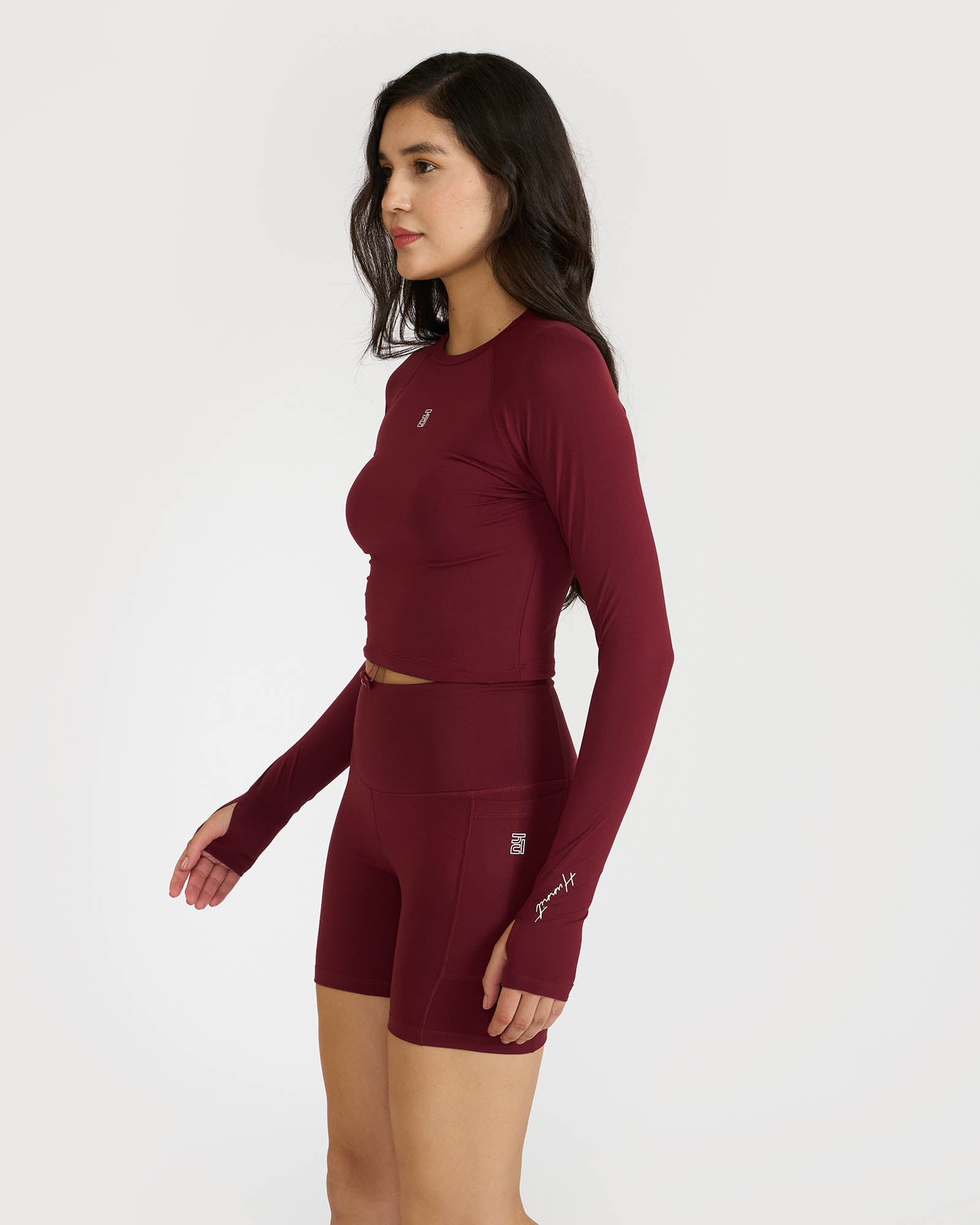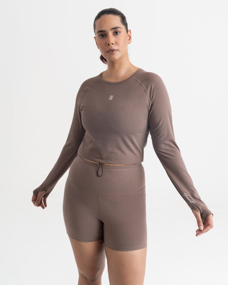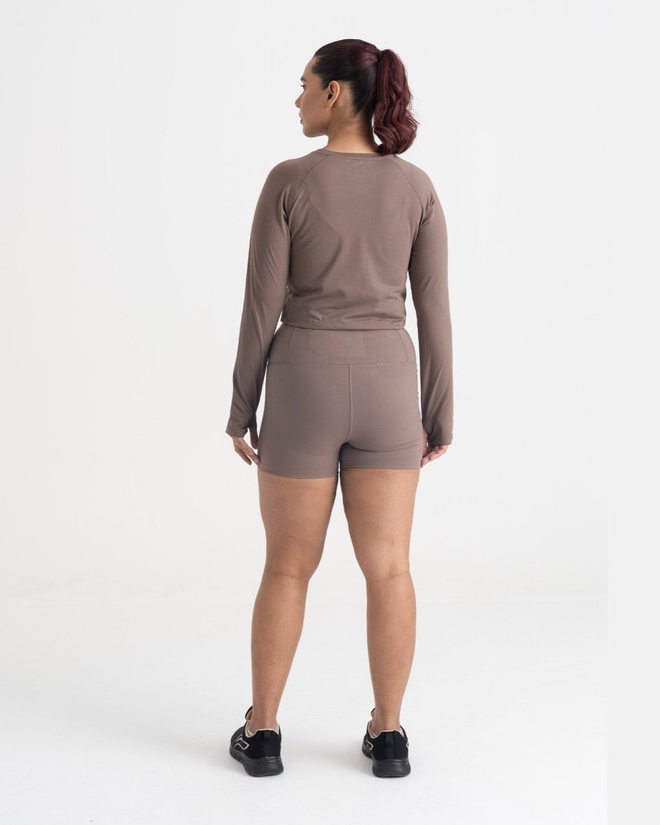Peached Perfection: The secret? A peached finish made with HunnitHugLite™ fabric that’s as soft as a peach and twice as sweet. We’re redefining workout chic with this luxurious feel and timeless design. You’ll want to wear this full sleeve crop top for more than just your workouts!