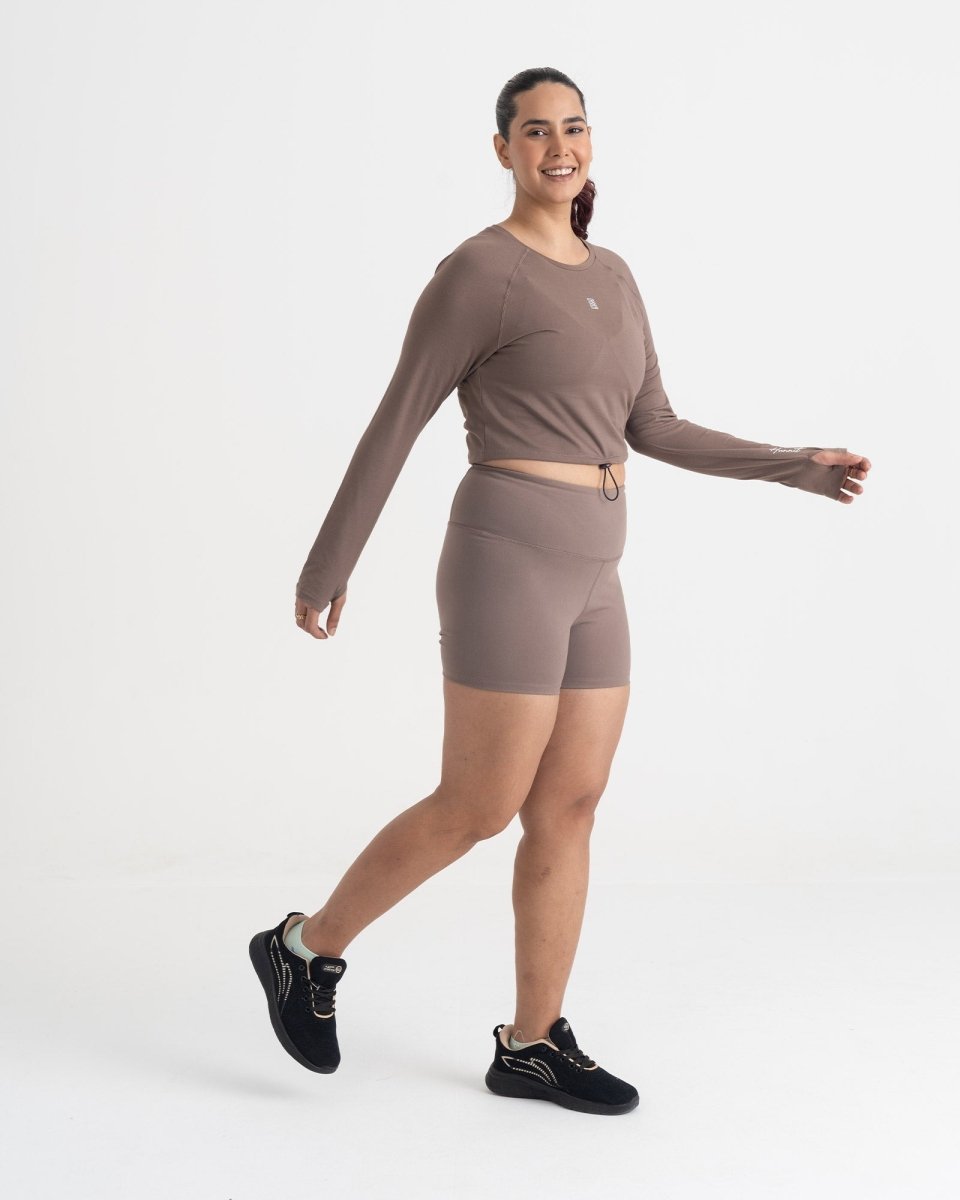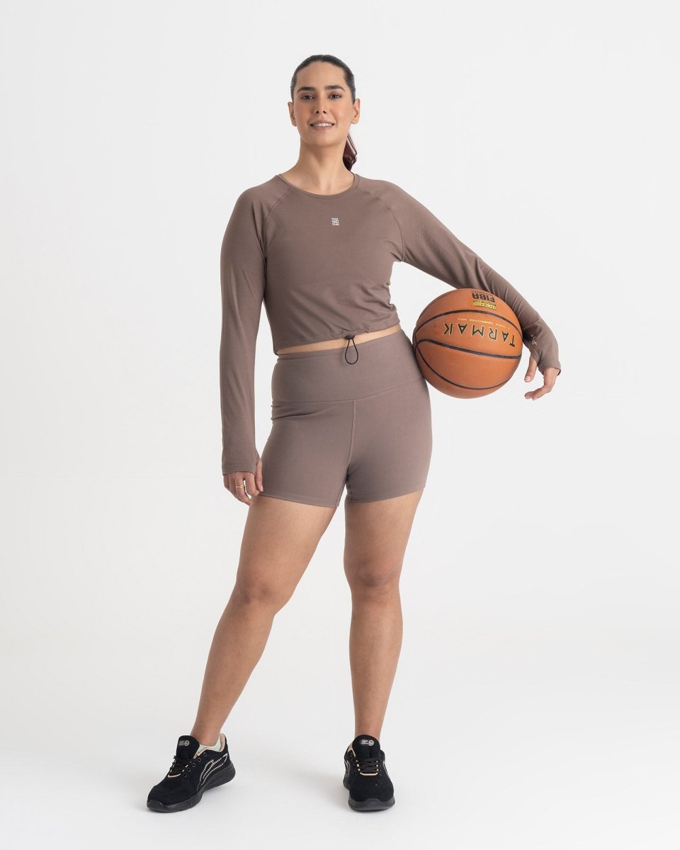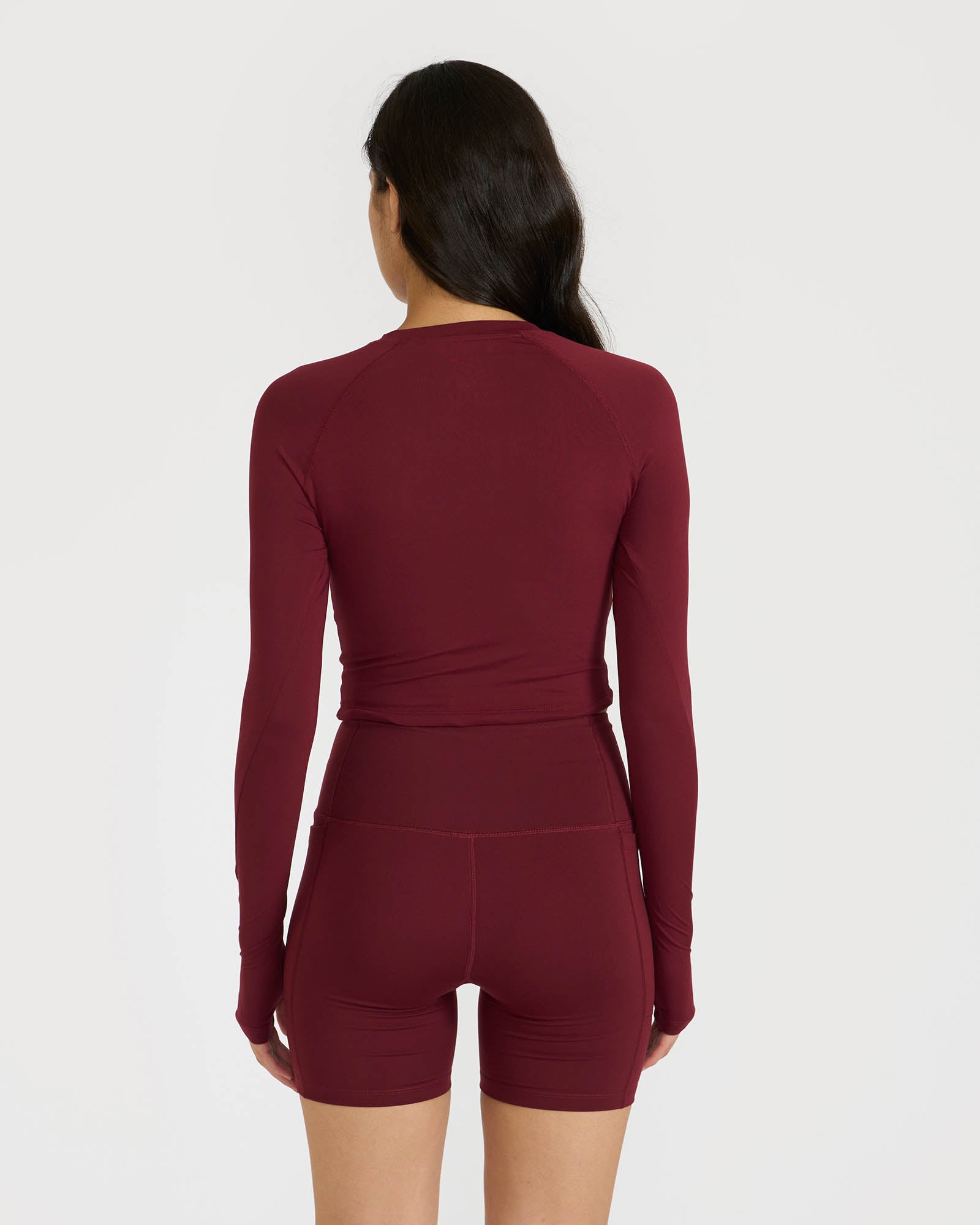 Peached Perfection: The secret? A peached finish made with HunnitHugLite™ fabric that’s as soft as a peach and twice as sweet. We’re redefining workout chic with this luxurious feel and timeless design. You’ll want to wear this full sleeve crop top for more than just your workouts!