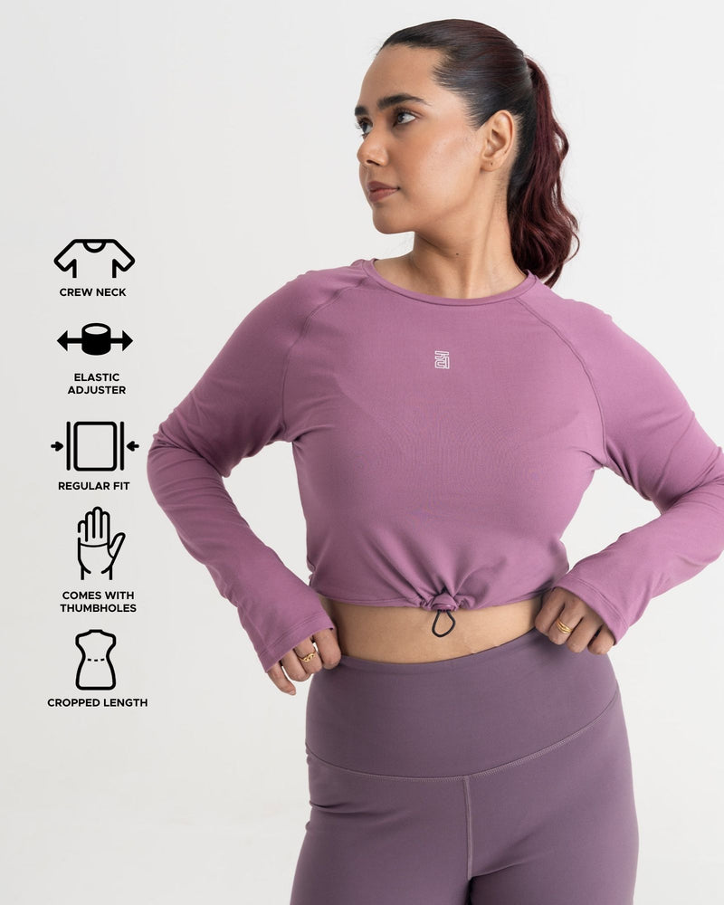 Buttery-Soft Bliss: Spoil yourself with a buttery-soft feel and ultimate comfort in our Zen Full-Sleeve Crop Top that’ll leave you wondering whether you’re wearing a top or a cloud.
