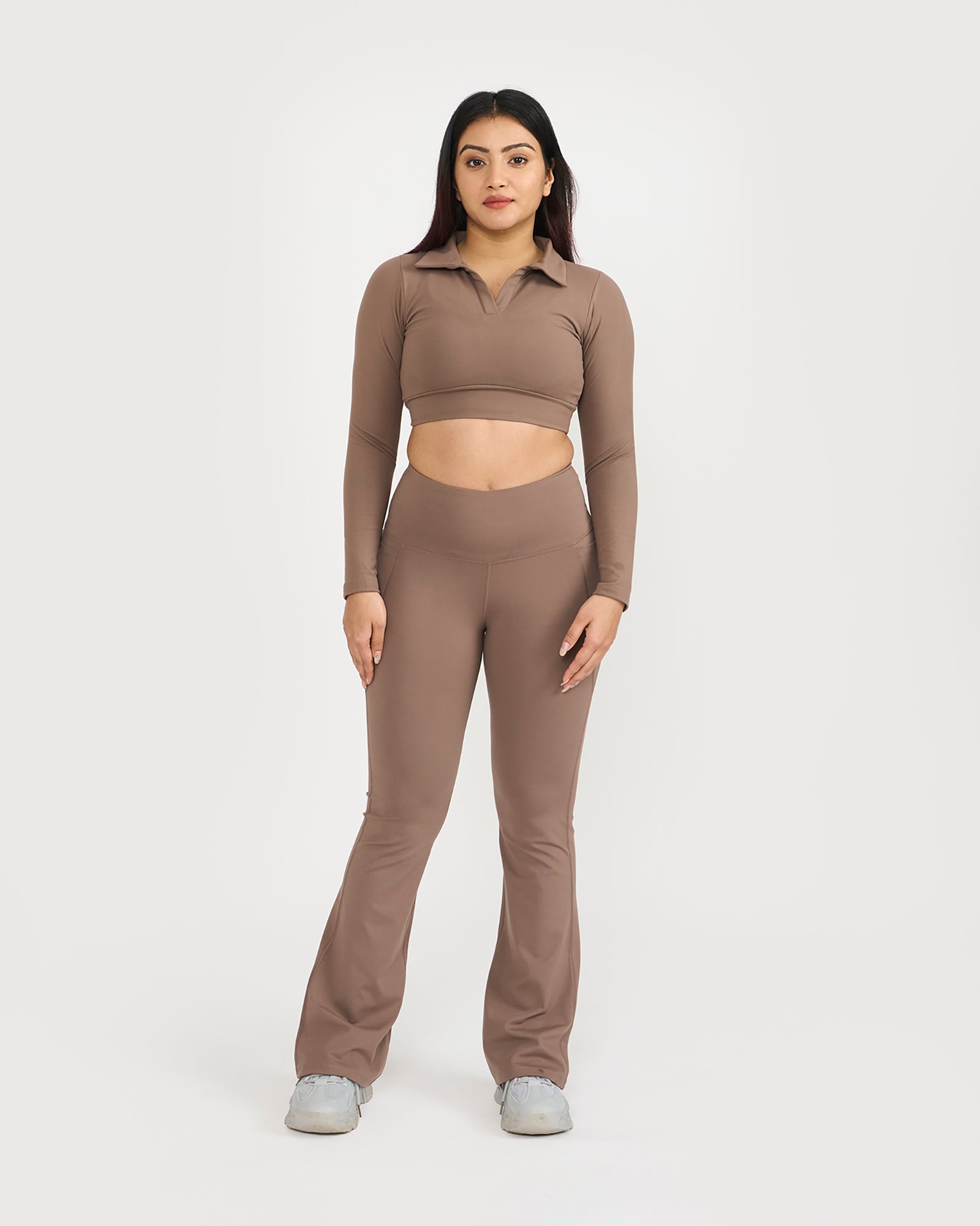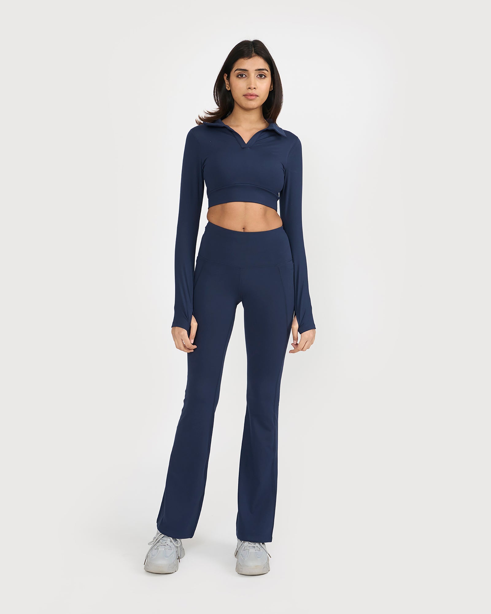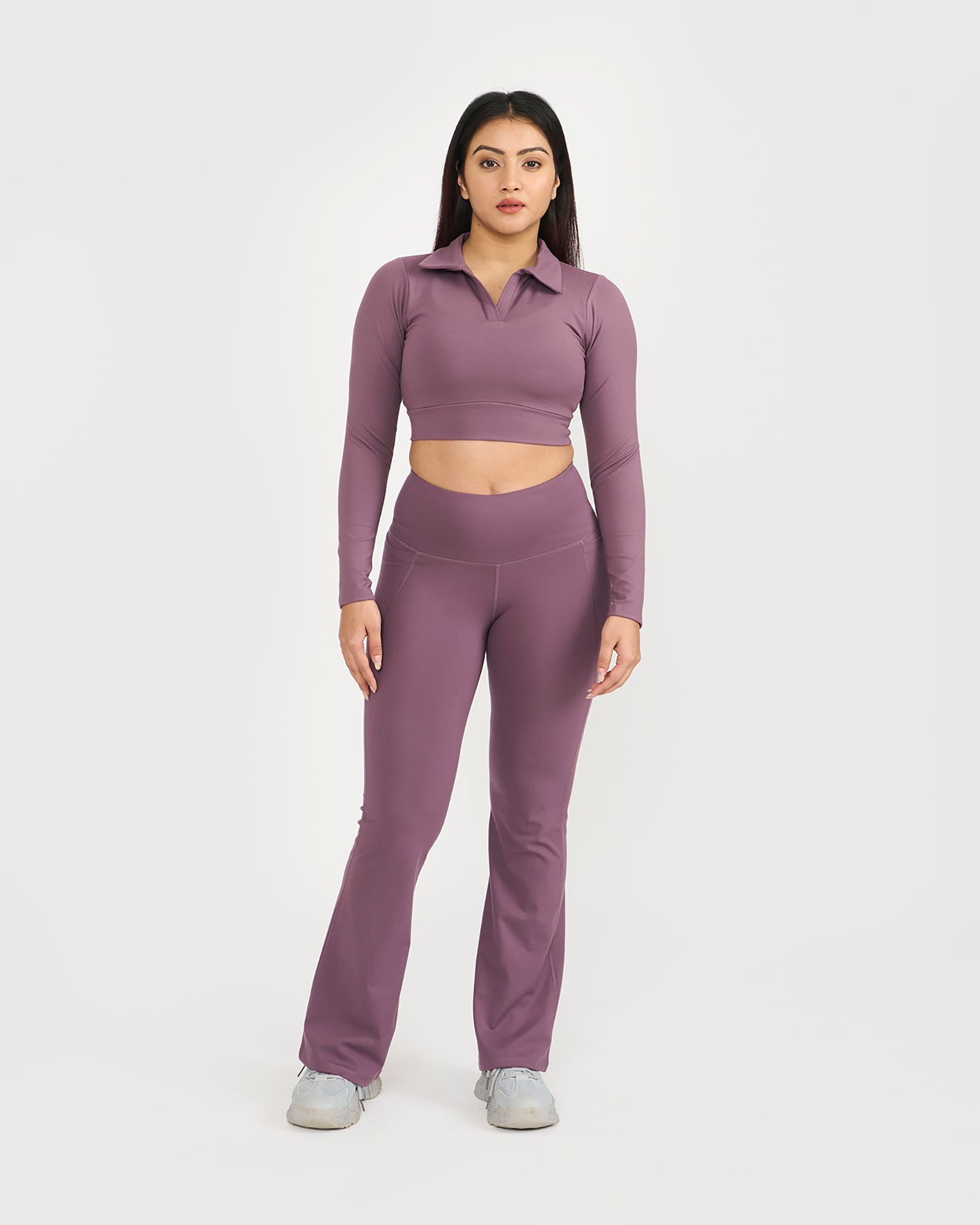 Zen Full Sleeve Polo Neck 2-in-1 Crop Top with Flare Pants Co-ord Set
