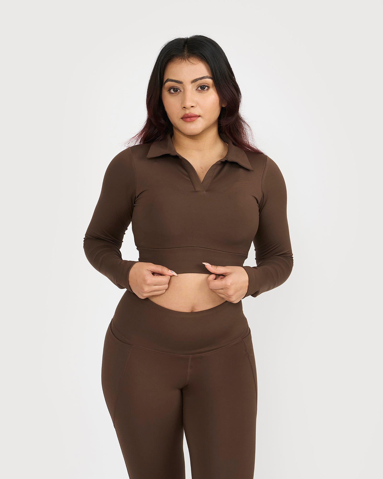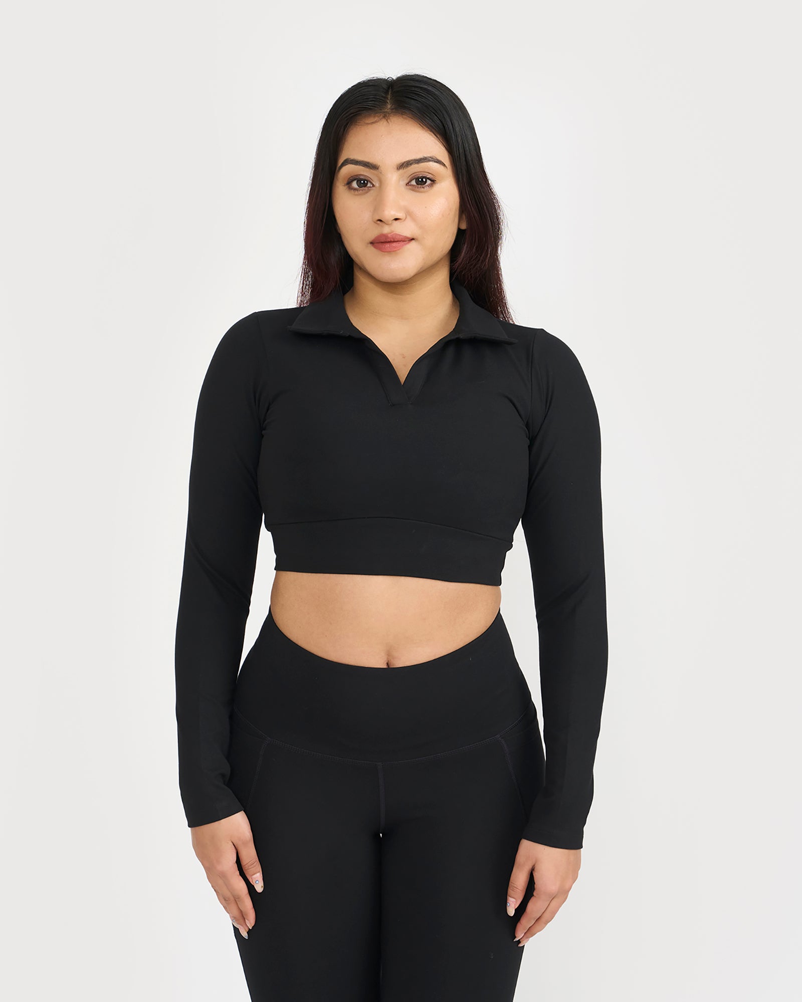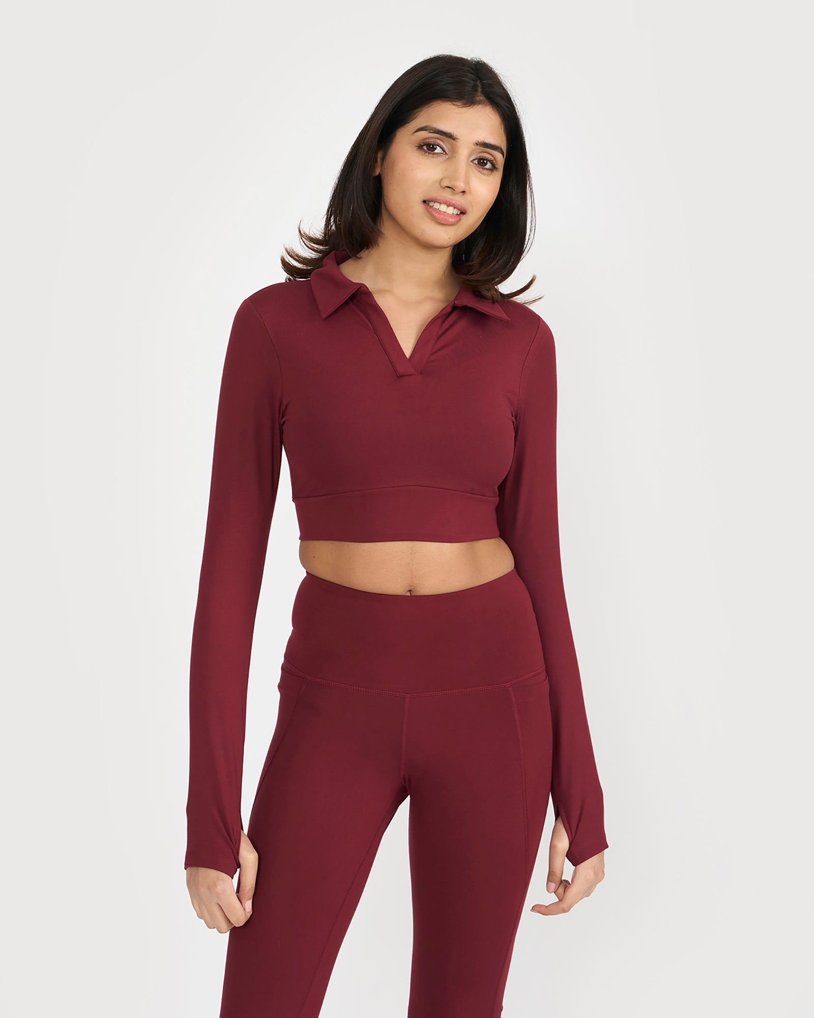 Zen Full Sleeve Polo Neck 2-in-1 Crop Top with Flare Pants Co-ord Set
