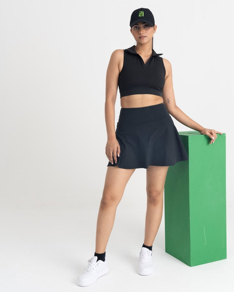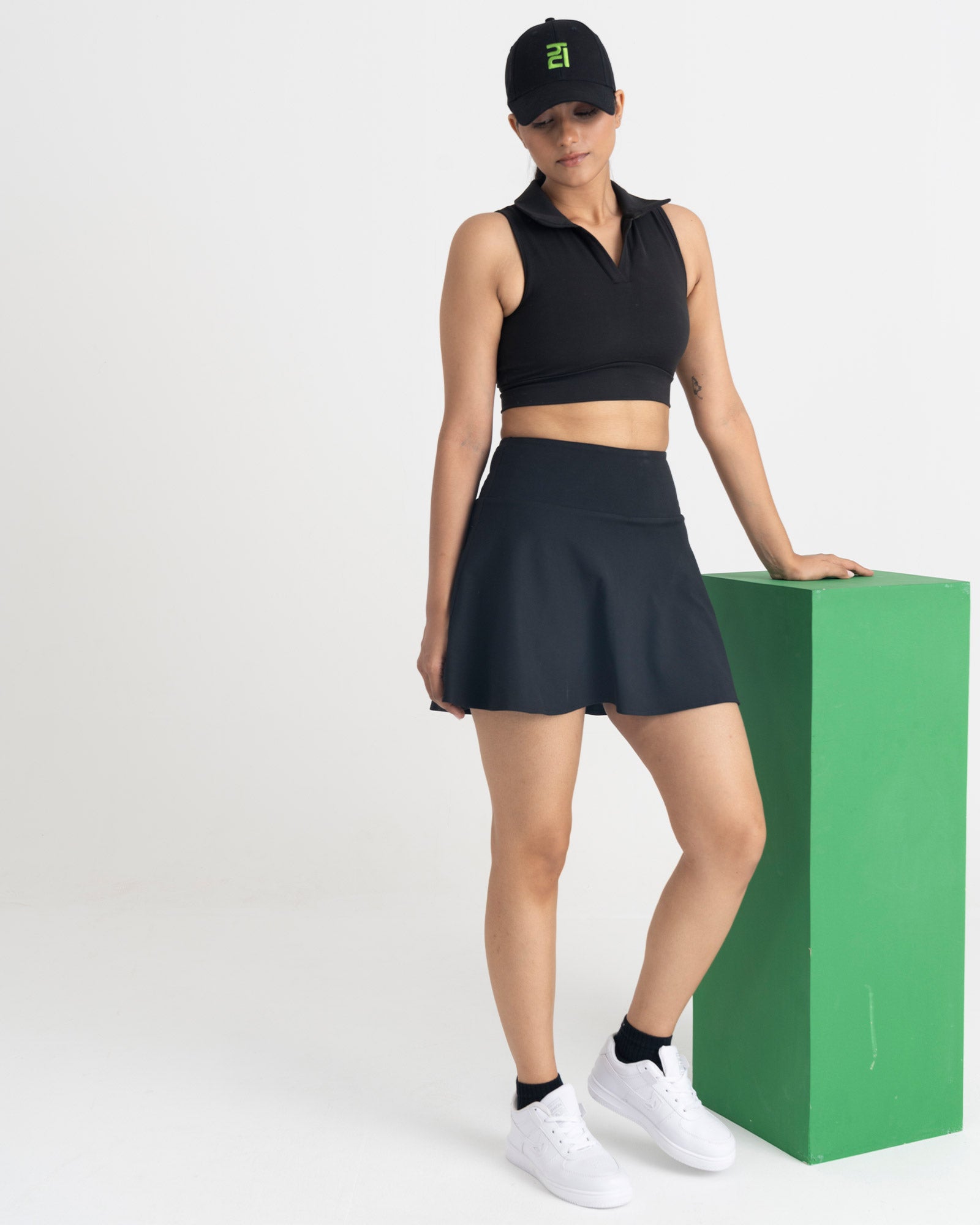 Elevate Your Mood With Our Zen Cheerful Skort Paired with Our 2-in-1 Polo Neck Crop Top!