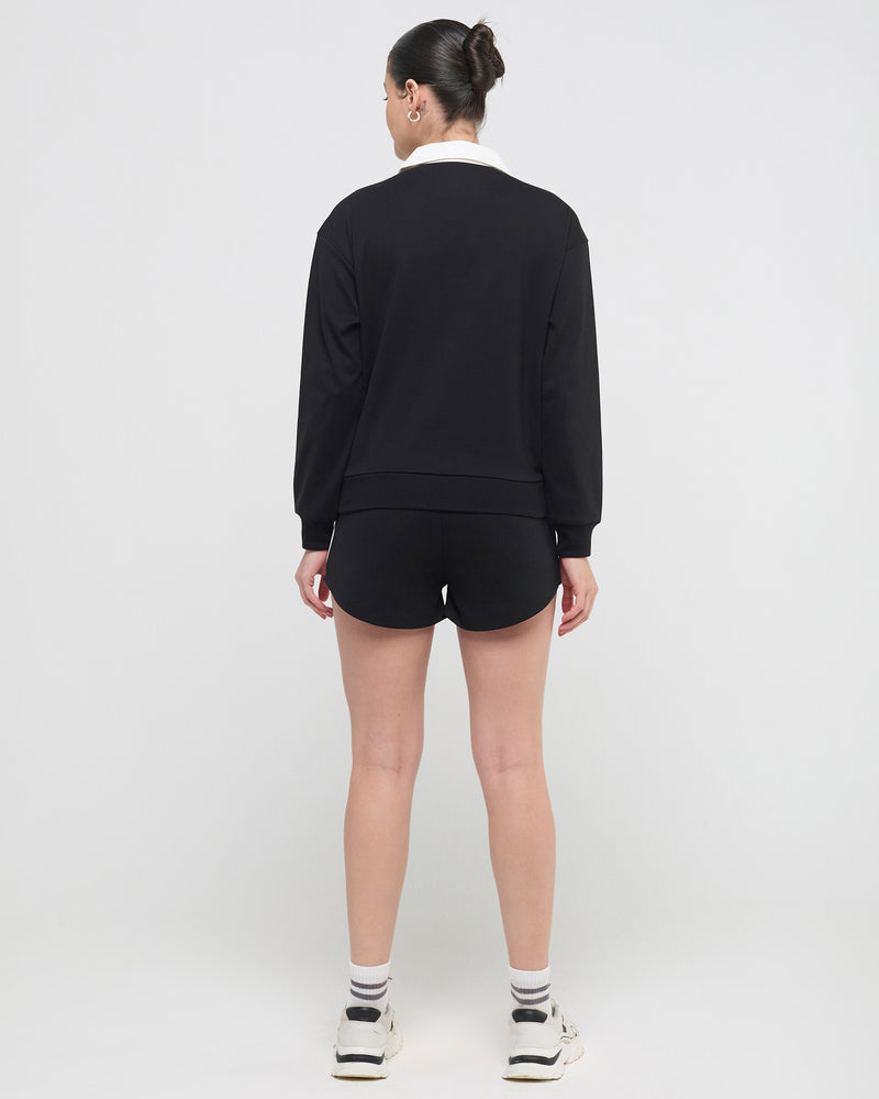 This is the throwback set your modern wardrobe needs. Vintage-inspired polo neck sweatshirt meets soft shorts in a relaxed silhouette that screams retro-cool—but feels totally now.